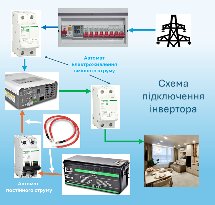- Захист від перевантажень: Автомати підбираються відповідно до потужності вашого інвертора та реального навантаження споживачів. Це запобігає перегріву кабелів та виходу обладнання з ладу.
